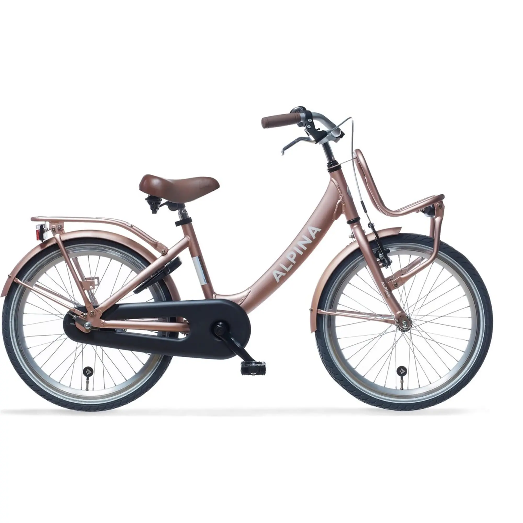 Heb je de details van de Alpina Clubb al gezien? Een subtiele zebraprint op de kettingkast en in de velgen, hoe gaaf! Deze fancy fiets heeft een betrouwbare terugtraprem en zorgt er - samen met de handrem aan de voorzijde- voor dat je kind veilig kan stoppen. Ook heeft het frame van de Alpina Clubb een lage instap zodat je gemakkelijk op- en af kunt stappen. Fiets parkeren? Met het handige ringslot staat de fiets in een handomdraai op slot. Je kind kan zelf haar batterijverlichting aandoen en is zo ook in het donker goed zichtbaar. Wel zo veilig!