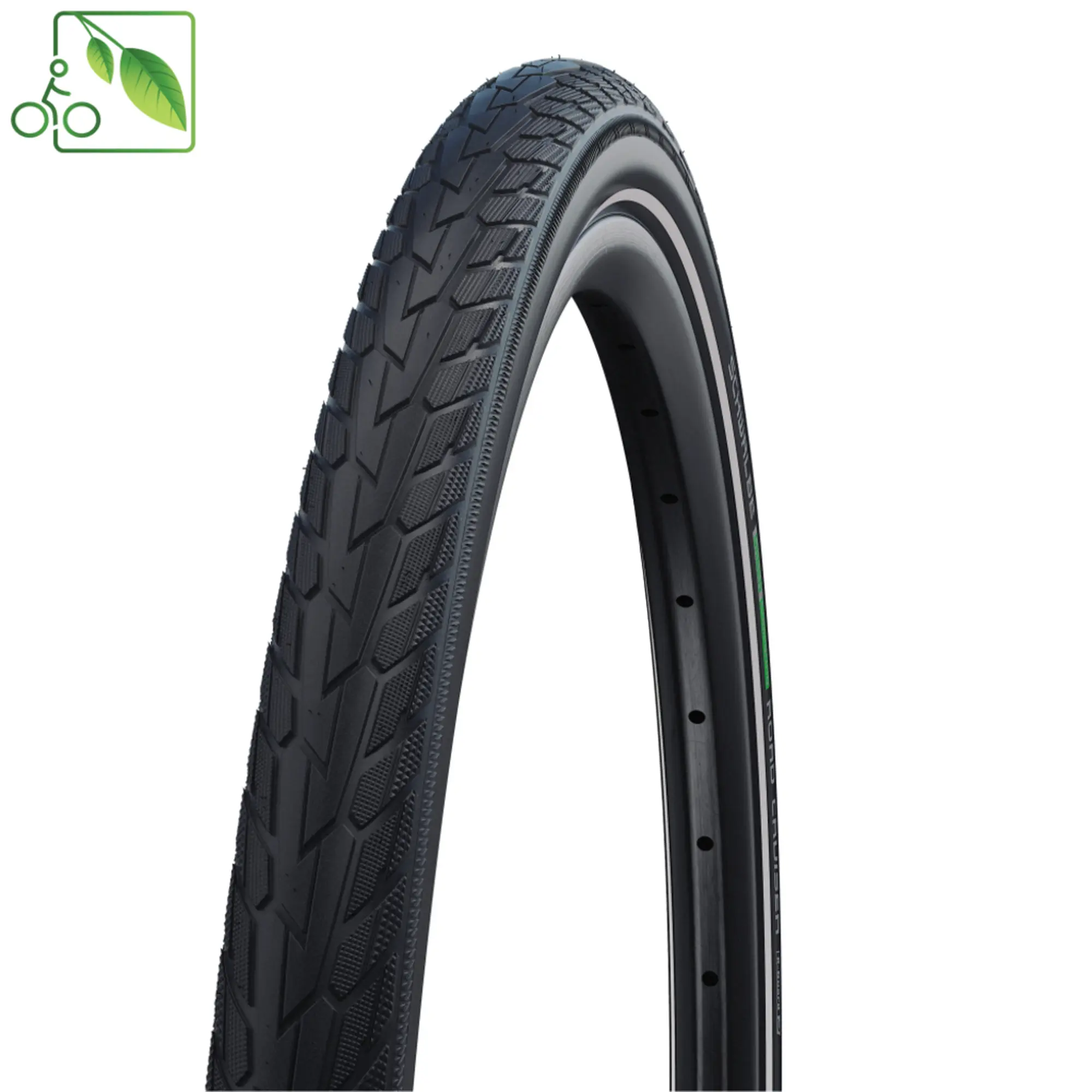 De Schwalbe Road Cruiser is een perfecte allround band voor stadsfietsen. Duurzaam geproduceerd en duurzaam in gebruik. Het meest opvallende kenmerk van de Road Cruiser zit op het loopvlak en heet Green compound. Een rubber met polymeren, gemaakt uit uitsluitend hernieuwbaar en gerecycled ruw materiaal, dat kwalitatief zo goed is dat het voor het eerst kan worden gebruikt in een conventionele fietsband.