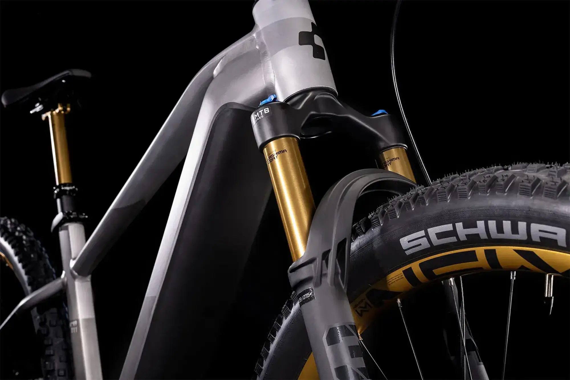 Het echte spektakel begint bij de Fox 34 Factory voorvork met haar iconische bronskleurige Kashima coating die niet alleen prachtig oogt, maar ook superieure prestaties levert met 120 mm veerweg. Deze exclusieve coating kehrt terug op de Fox Transfer Factory dropper post, terwijl de speciaal geanodiseerde bronskleurige Newmen Evolution wielen het thema doorzetten. De legendarische Magura MT7 remmen met grote 203 mm schijven zorgen voor ongeëvenaarde stopkracht.