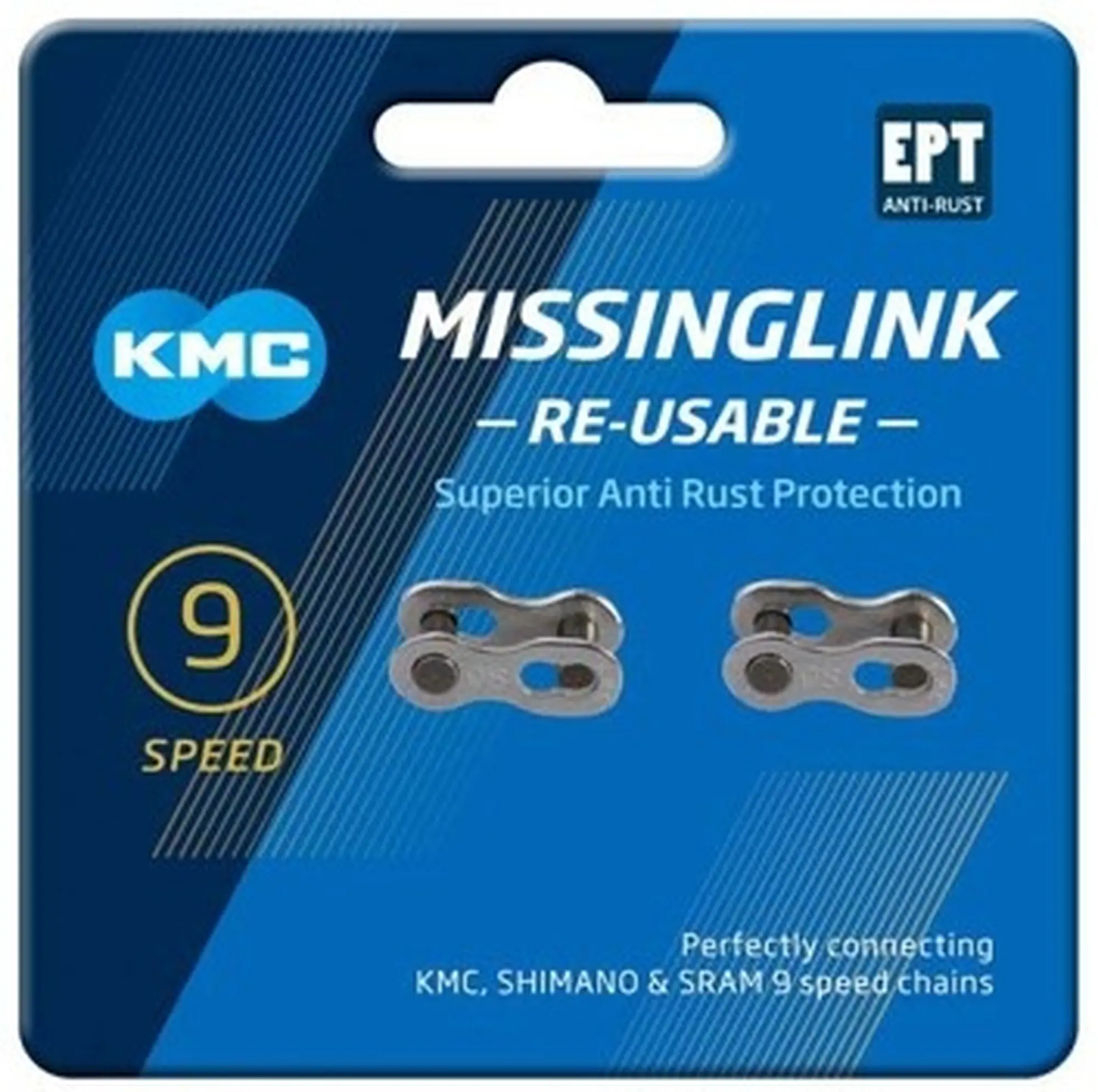 Deze KMC 9R EPT MissingLink is geschikt voor 9-speed KMC, Shimano en SRAM kettingen.