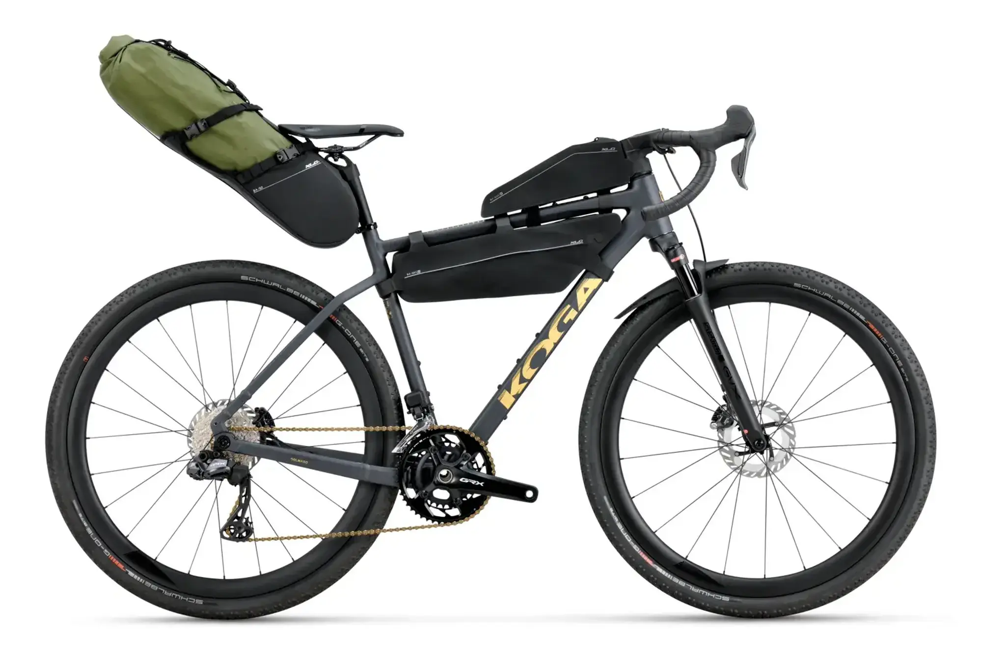 De afmontage is minstens zo doordacht. Schwalbe G-One Bite banden in 50 mm breedte zorgen voor comfort en tractie op uiteenlopende ondergronden. De KOGA Full Carbon wielset met 38 mm velghoogte is tubeless ready en voorzien van centerlock schijfmontage, waarmee ze licht rollen maar stevig aanvoelen in bochten of op afdalingen. Afgewerkt met een Selle San Marco zadel en Fizik handvatten, voelt deze fiets aan als een hoogwaardige metgezel voor het serieuze werk.