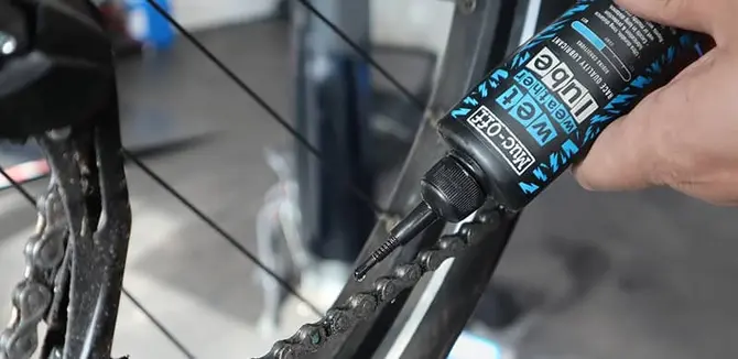 - Breng een passend smeermiddel aan op de ketting terwijl je de pedalen langzaam ronddraait.