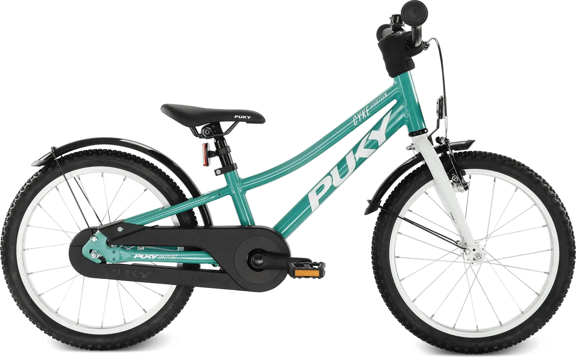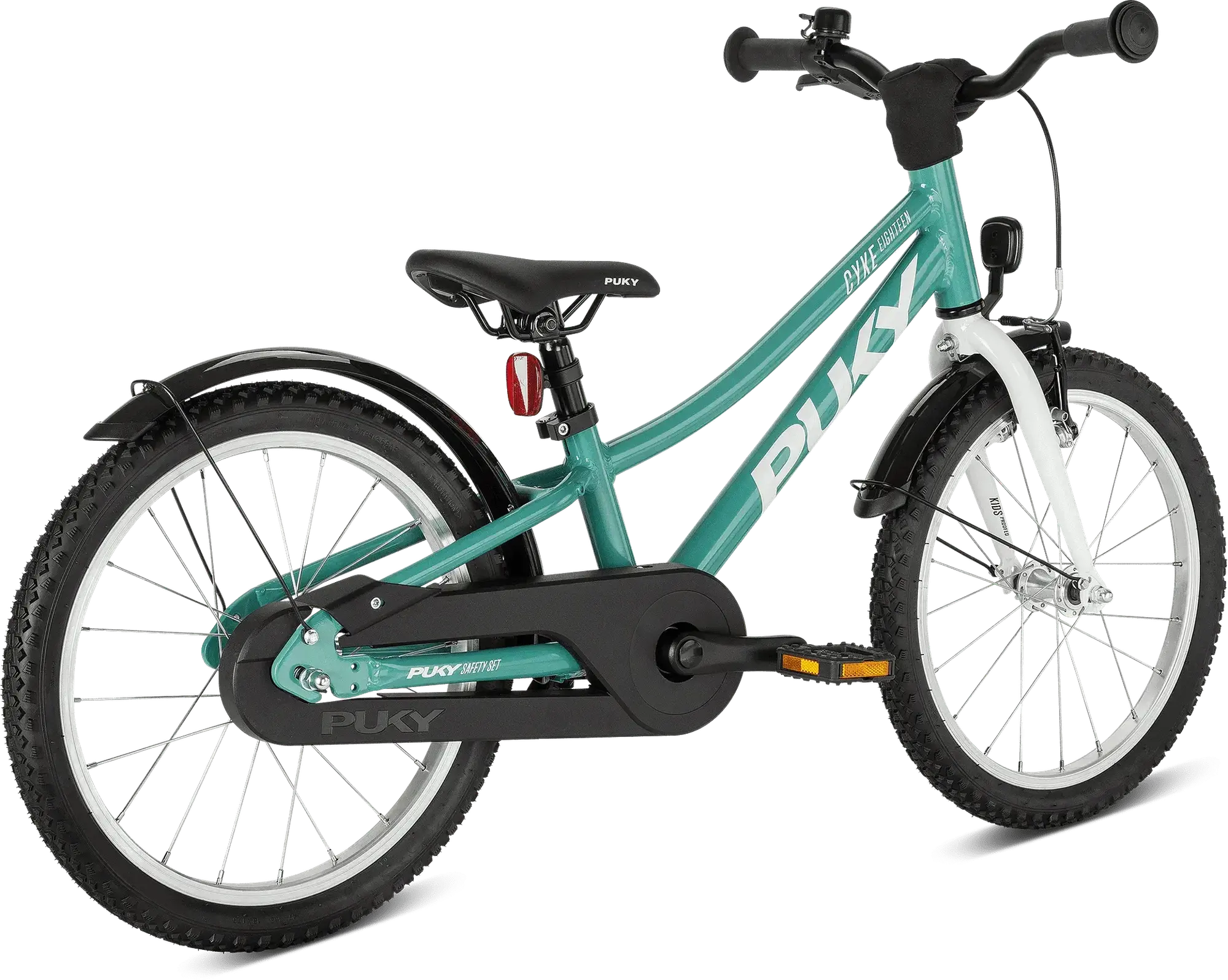 De PUKY CYKE 18 wordt geleverd met het complete PUKY Safety Set, inclusief alle essentiële componenten voor dagelijks gebruik. Spatborden, een bel met diameter 22mm en een zijstandaard zijn al standaard meegeleverd. De stoßvaste poedercoating beschermt tegen dagelijks gebruik, terwijl het in hoogte verstelbare zadel zorgt dat de fiets meegroeit.