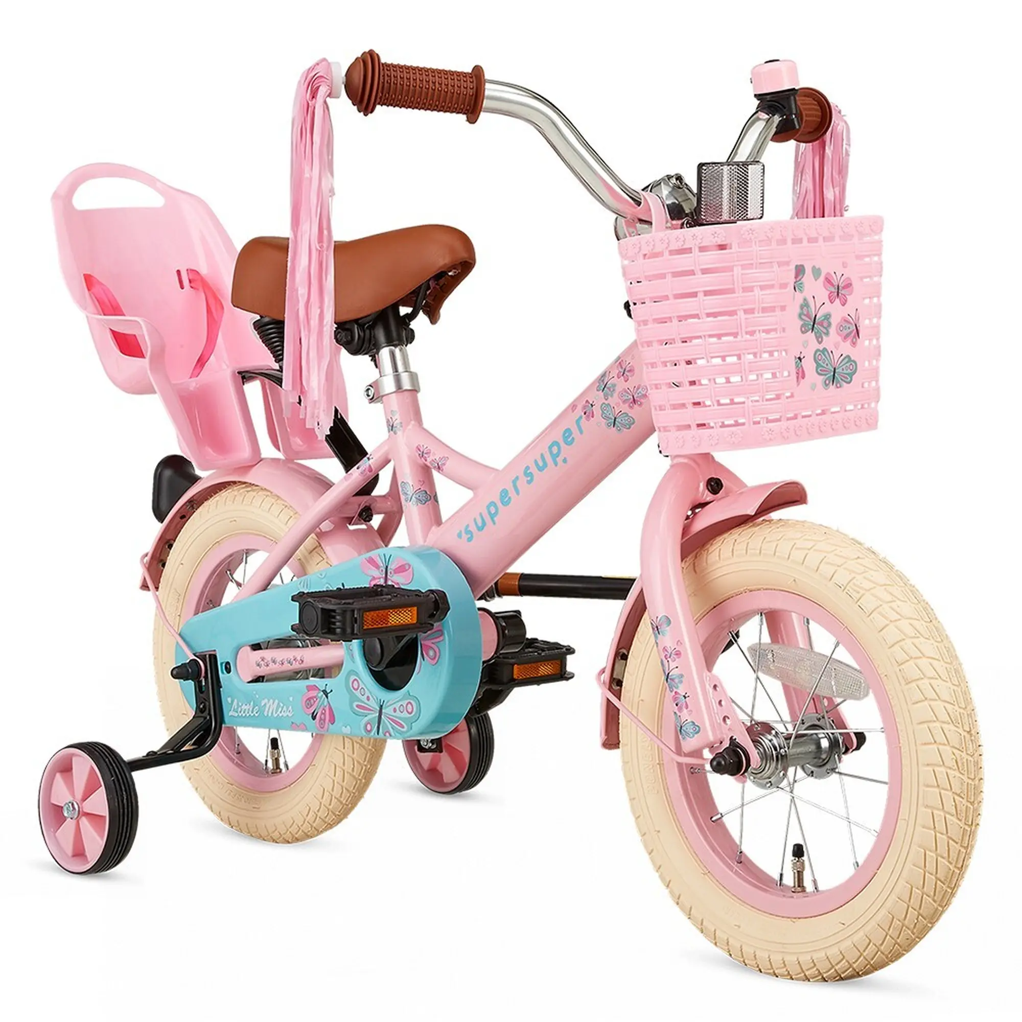 Viva la magic! Terwijl de slingers wapperen in de wind, dragen de vlinders op deze stevige fiets je door jouw magische wereld. Met het zitje neem je jouw favoriete maatje gemakkelijk mee op al je verre reizen. Je spulletjes kunnen in het mandje aan het stuur. The world is #supersuper!