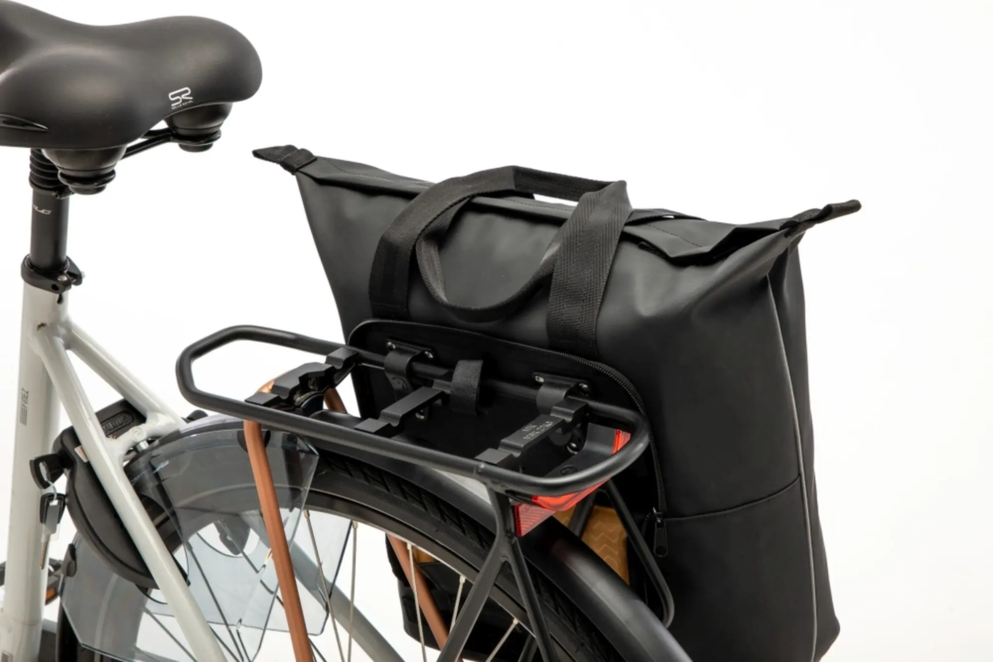 De tas klik je eenvoudig aan je bagagedrager met de stevige kunststof haken van New Looxs. Na het afnemen van de fiets werk je deze haken netjes weg achter een ritsvakje, waardoor de tas oogt als een gewone shopper. De reflecterende bies op de zijkant zorgt voor extra zichtbaarheid in het verkeer. De Odense Kota is dus niet alleen praktisch, maar ook een tas waar je mee gezien mag worden.