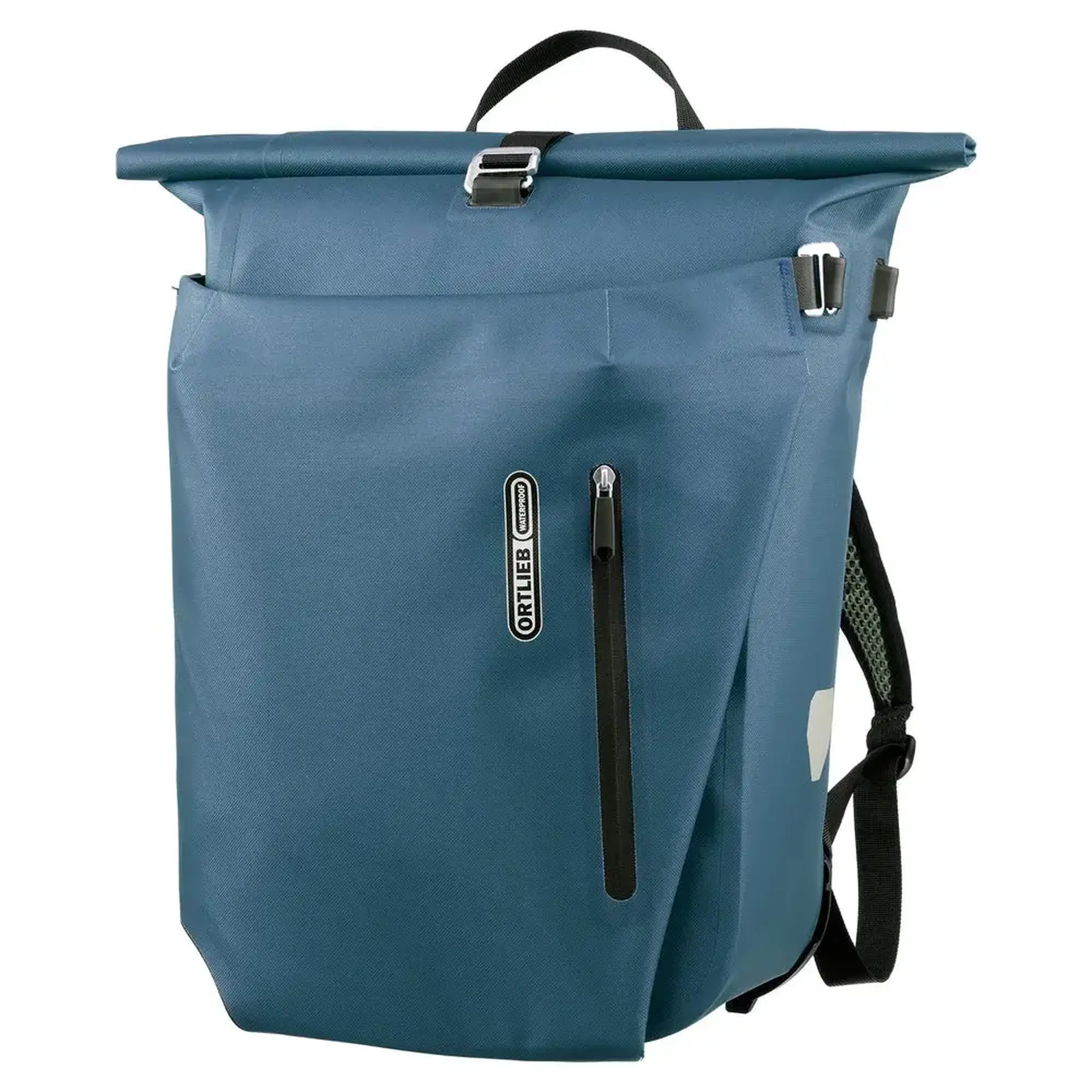 Aan de ene kant is de tas voorzien van Ortliebs Quick-Lock 2.1 bevestigingssysteem, geschikt voor bagagedragers tot 16 mm, inclusief verloopstukken voor 8, 10 en 12 mm. De andere kant is uitgerust met een volledig gewatteerd draagsysteem met ergonomische schouderbanden, een borstband en een handvat. De handige flap met geïntegreerd opbergvak bedekt altijd de kant die op dat moment niet in gebruik is – zo wissel je razendsnel tussen fietsen en dragen.